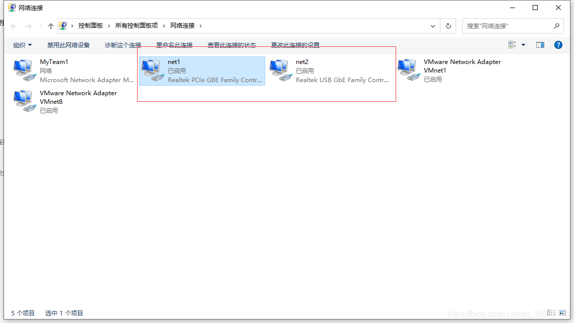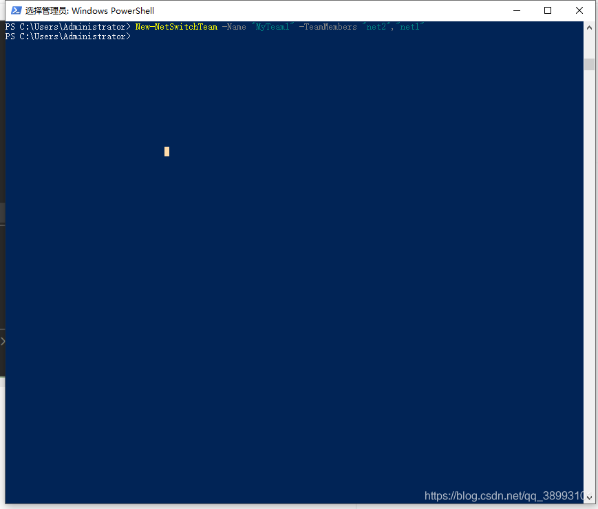 输入 New-NetSwitchTeam -Name “MyTeam1” -TeamMembers “net2”,“net1”